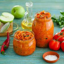 - mezcle el calabacín con las verduras picadas, agregue la pasta de tomate, el azúcar, la sal, el aceite y el vinagre a la mezcla total;