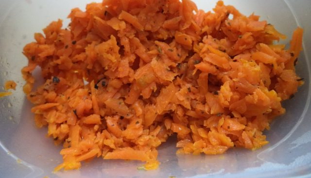 - Haz lo mismo con las zanahorias después de rallarlas.