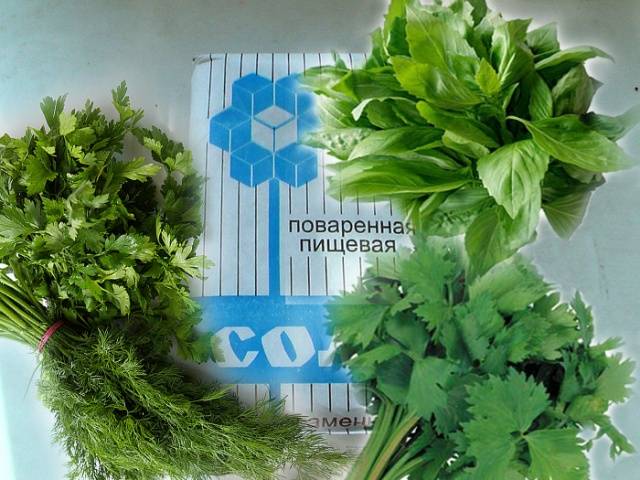 - Verdes - 10 g (perejil -5 g, eneldo y apio 2.5 g cada uno);