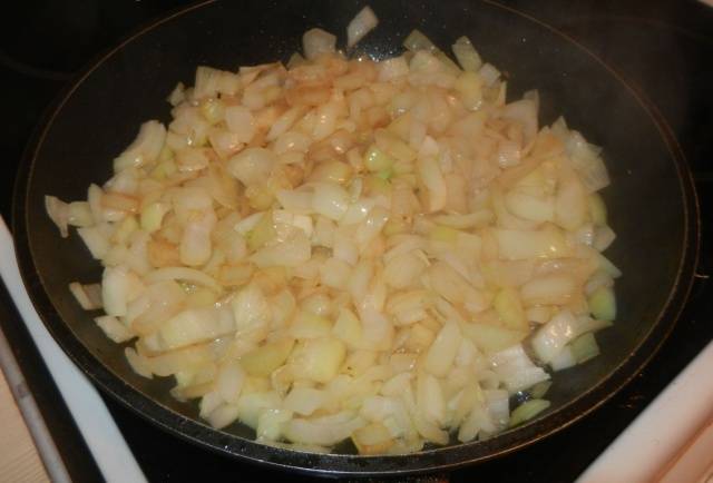 Tome una cacerola con un fondo grueso o un caldero y las cebollas se fríen primero en aceite bien caliente hasta que estén doradas. Luego se le agregan tomates y la mezcla se fríe durante otros 10 minutos.