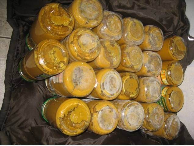 - Las latas listas para usar deben envolverse inmediatamente y dejarse en esta forma hasta que se enfríen por completo. Solo al día siguiente se pueden transferir a un lugar fresco sin luz para su almacenamiento.