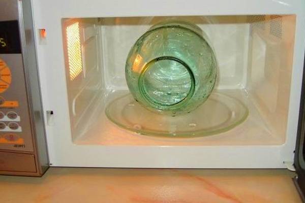 Una forma interesante y moderna es esterilizar latas en un microondas hornos. Simplifica enormemente este procedimiento. El agua se vierte en latas bien lavadas en una capa de varios centímetros y las latas de agua se colocan en el microondas a máxima potencia. Basta con esterilizar frascos con un volumen de 0,5 litros y 1 litro durante 5 minutos. Para latas más grandes, el tiempo aumenta a 10 minutos.