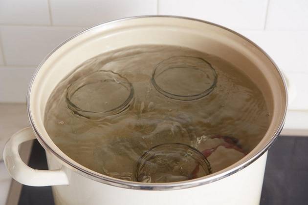 Tradicionalmente, los frascos se esterilizan al fuego de una estufa. Para hacer esto, se colocan en una olla con agua hirviendo durante 5-10 minutos (latas de medio litro y litro) o se colocan en un soporte especial colocado encima de una olla con agua hirviendo (la llamada esterilización al vapor). .