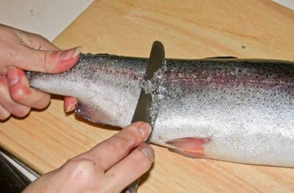 - La calidad del pescado. Para ahumar truchas con éxito en casa, debe comprar especímenes excepcionalmente frescos con ojos brillantes y saltones. El color de las branquias debe ser rojo, la superficie de la carcasa sin deformaciones obvias. Ningún olor pútrido específico debe provenir de la trucha. Los individuos vivos siempre se distinguen por la movilidad, la ausencia de manchas, daños en las escamas.