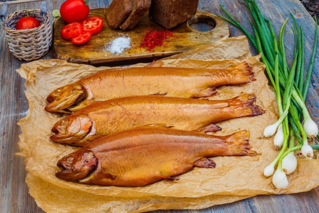 Tanto la trucha de arroyo pequeña como la trucha de mar son excelentes para ahumar. El peso de las canales en la mayoría de los casos es de 1.8-2.0 kg. Este pescado se puede llamar universal con seguridad, se prepara tanto ahumado en caliente como ahumado en frío. En términos de sabor, supera al salmón de jaula.