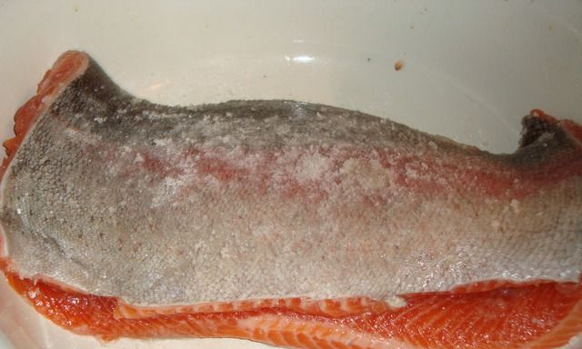 - Embajador seco. Este método consiste en frotar el pescado con una mezcla de sal y pimienta, la proporción puede ser diferente. Aquí es imposible salar demasiado; al lavar las canales, saldrá su exceso. Alternativamente, se puede complementar con especias, especias. El tiempo de salazón es de 12 horas.