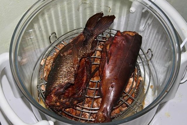 El tiempo de cocción del pescado ahumado en caliente depende directamente de su tamaño. Las canales medianas estarán listas en 25-30 minutos, y las grandes deben ahumarse en 30-40.