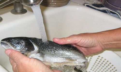 - Lavar la trucha, liberarla de las entrañas, separar la cabeza.
