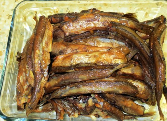 Dado que las canales son bastante pequeñas, el proceso de ahumado llevará menos tiempo en comparación con los peces más grandes. A una temperatura de 28-30 grados, el manjar estará listo después de 12-18 horas. Se recomienda ventilar el olor durante un par de horas al aire libre antes de su uso.