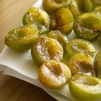 Está elaborado con ciruela verde, que aún no ha adquirido su color natural.