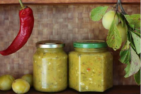 Se prepara a partir de frutas de diferentes colores, y en cada caso la receta será ligeramente diferente. Para una salsa de ciruela cereza amarilla, las verduras frescas son más adecuadas, para las rojas secas, y el verde combina bien con cualquiera.