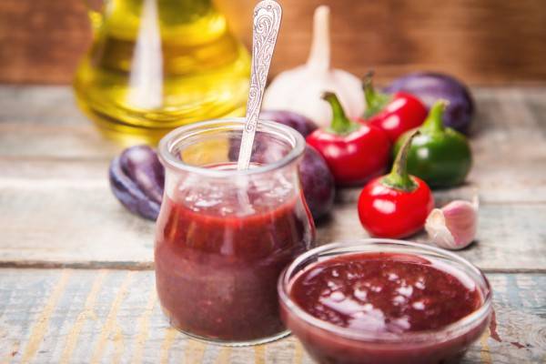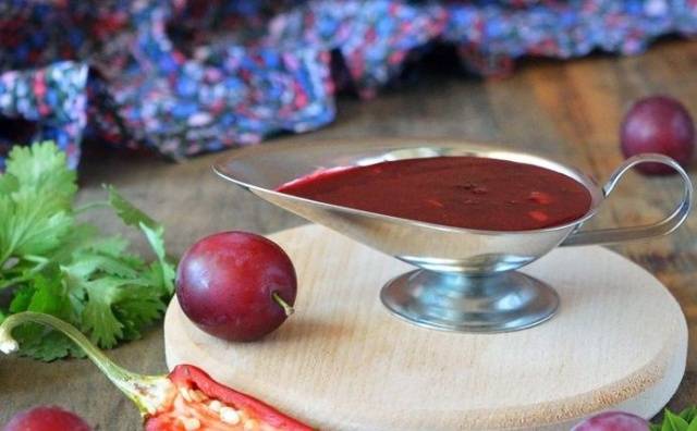 Tkemali es una salsa increíblemente sabrosa que es muy fácil de hacer en casa. Curiosamente, este manjar georgiano está hecho de frutas con la adición de varias especias. Esta preparación tiene un agradable sabor agridulce y es muy popular. Tkemali clásico preparado con ciruelas, pero se puede reemplazar fácilmente ciruela roja... A continuación puede encontrar la receta de tkemali de ciruela roja cereza.
