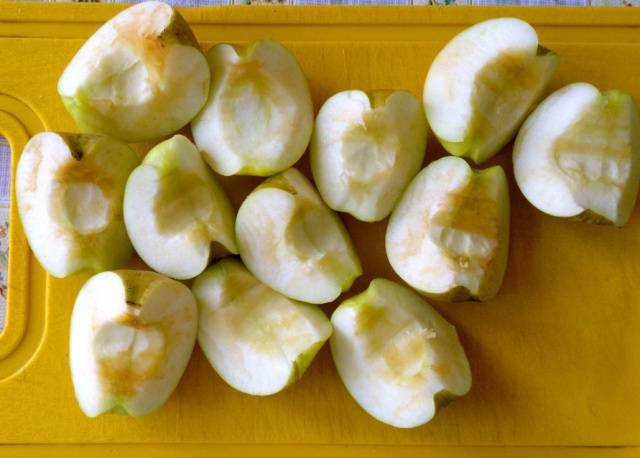 - El primer paso es preparar las manzanas. Para la salsa se eligen manzanas verdes con sabor amargo. La variedad es perfecta "Antonovka". Luego deben lavarse, pelarse y quitarse el tallo y el corazón.
