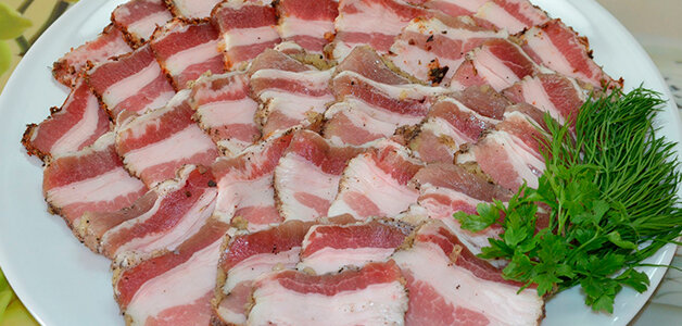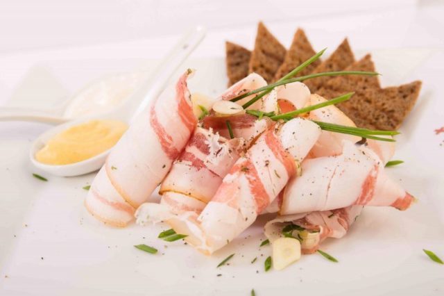 Es costumbre cortar el tocino terminado en rodajas pequeñas y servirlo con papas hervidas y hierbas, así como como bocadillo independiente. Con él se obtienen deliciosos bocadillos.
