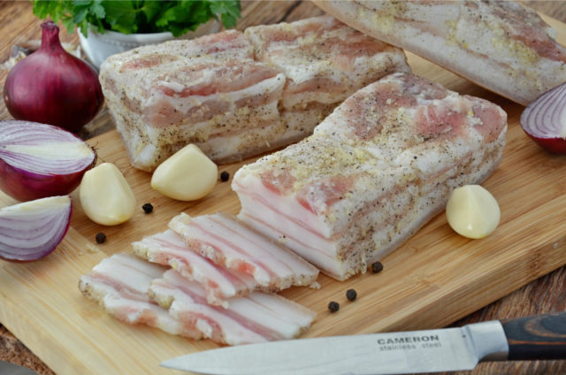 Como salar correctamente la manteca de cerdo en salmuera en bielorruso