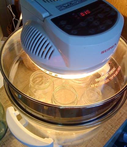 Si desea esterilizar platos preparados, simplemente coloque los frascos con ellos en el recipiente de la airfryer, cierre las tapas sin bandas de goma y encienda el temporizador durante el tiempo requerido a la temperatura deseada.