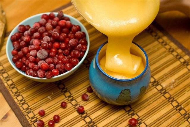Exprima el jugo de las bayas preparadas, disuelva la miel en agua tibia y mezcle con el jugo. Todas las propiedades beneficiosas de la miel y las bayas se conservan al máximo en esta bebida de frutas.