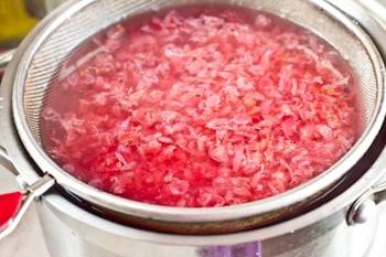 Agregue agua, azúcar al puré de viburnum, hierva. Después de un par de minutos, retire la sartén del fuego y deje que la bebida se filtre debajo de la tapa hasta que se enfríe.