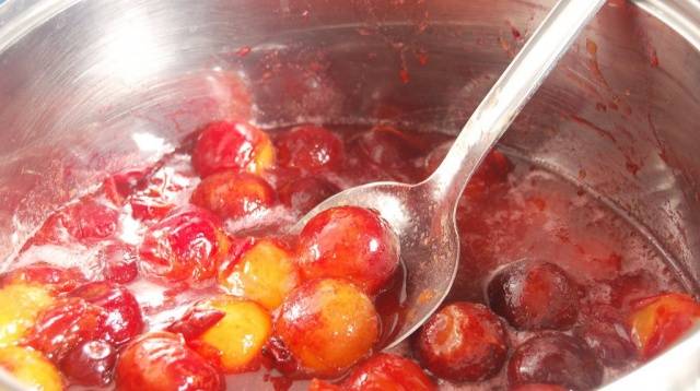 Lave la ciruela cereza o la ciruela, póngala en agua y hiérvala al menos hasta que los huesos se separen fácilmente de la pulpa.
