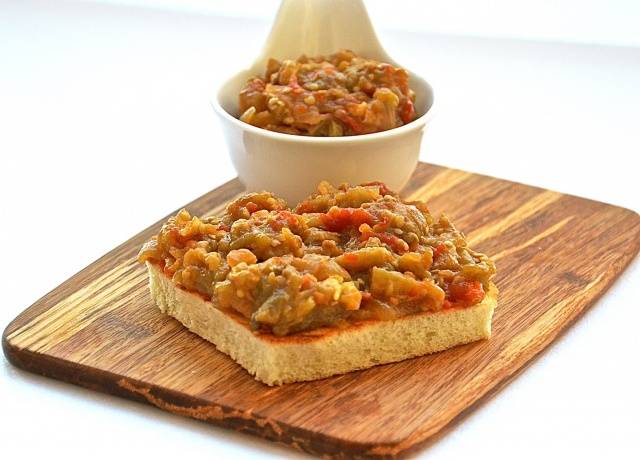 - El caviar de berenjena se sirve como aperitivo o como parte de sándwiches.