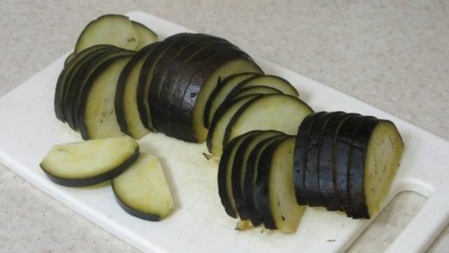- Las berenjenas en la cantidad de 5 piezas se preparan para su posterior procesamiento. Si se utilizan verduras tiernas, se permite no dejar la piel.
