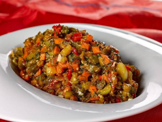 El caviar de berenjena clásico se obtiene agregando tomates, zanahorias, cebollas y pimientos dulces durante la cocción. Esta combinación de ingredientes proporciona el sabor familiar del caviar de berenjena. Este plato contiene sustancias útiles, es nutritivo y bajo en calorías.