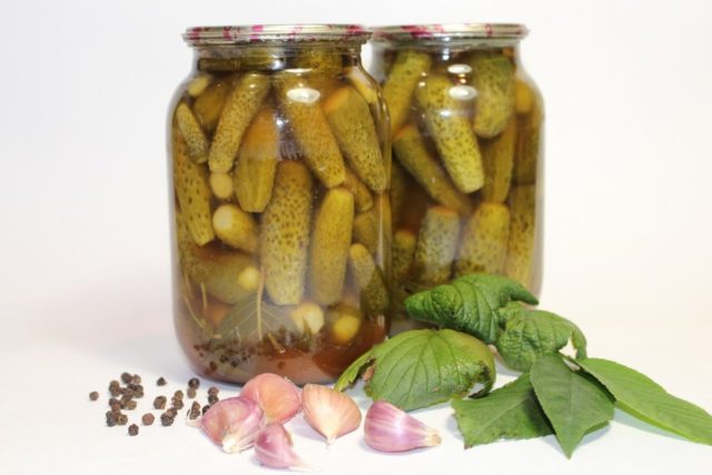 Con este método de conservación, no es necesario precalentar la materia prima, el producto se prepara mediante el método de esterilización. Las especias (incluido el ajo y las hojas) son opcionales. Todos los ingredientes, excepto el conservante, se agregan durante la colocación de verduras. Componentes: