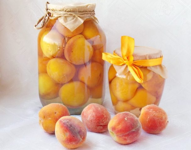 En cuanto a los platos, para enlatar según cualquier receta de melocotones en almíbar, lo ideal son los tarros de litro, uno y medio o dos litros. En frascos de tres litros, la fruta tiene la posibilidad de aplastarse ligeramente por su propio peso, y para envases más pequeños, los melocotones son demasiado grandes.