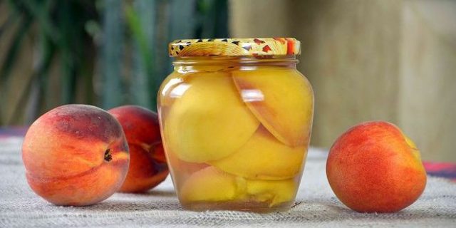 Esta receta es muy similar a la forma clásica de preparar melocotones enlatados en almíbar. Pero para acelerar y facilitar el proceso, las frutas se vierten con almíbar hirviendo solo una vez.