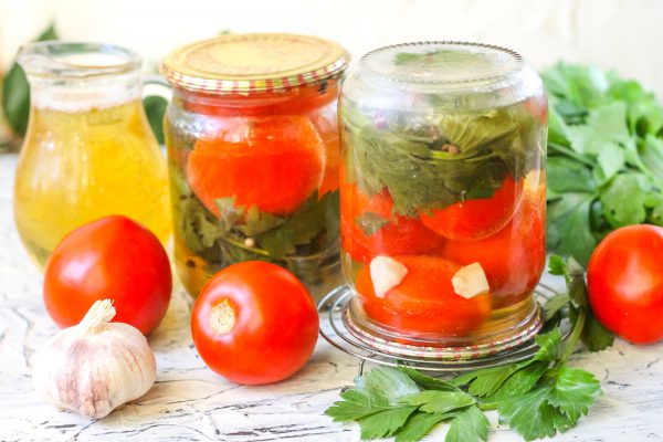 Cómo enrollar tomates en jugo de manzana y ajo.