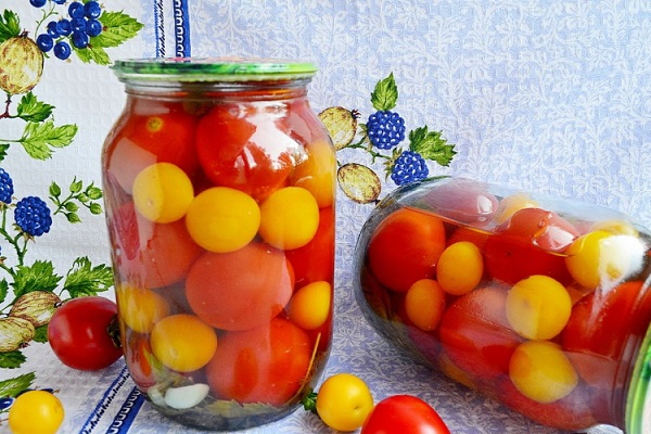 Cómo conservar tomates en jugo de manzana con ciruela cereza