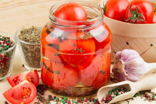 Reglas para almacenar tomates marinados en jugo de manzana.