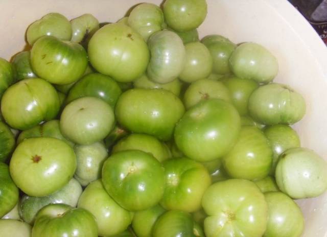 Como en las recetas anteriores, todas las verduras deben estar frescas y sin daños. Los tomates no se utilizan completamente verdes, sino lácteos o marrones.