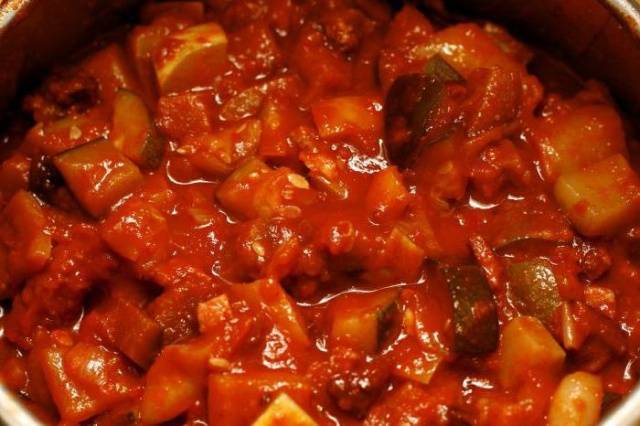 El lecho según esta receta se prepara en dos etapas. Primero debes cocinar puré de tomates y luego pasar al lecho.