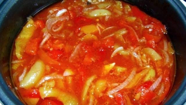Después de un tiempo especificado, el lecho se puede colocar sobre las latas preparadas. Pero primero deberías probar el plato. Agregue sal y azúcar si es necesario, y verifique que los pimientos estén listos. Si esto último le parece difícil, encienda la multicocina en el mismo modo durante otros 10-15 minutos.El tiempo exacto de cocción del lecho depende de la potencia de tu modelo.