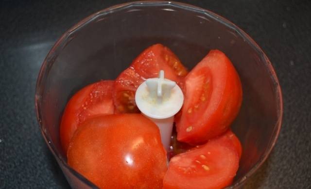 Luego, los tomates se trituran con una licuadora, batidora o procesador de alimentos.