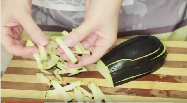 Pasados los 30 minutos, debes enjuagar las berenjenas nuevamente y secarlas con una servilleta o toalla. Ahora proceda al ajo. Debe pelarse y rallarse. Algunas amas de casa pasan el ajo por una prensa. Luego se tritura la pimienta amarga. Los pimientos morrones también se despojan de semillas y tallos, y luego la verdura se corta en tiras. Corta la cebolla en medias anillas medianas.