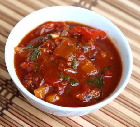 Con la adición de pimiento picante, esta preparación se volverá más aguda y una gran cantidad de azúcar hará que el sabor de este plato sea rico y brillante. Puedes servirlo con carne como guarnición, el lecho casero va bien con pasta o patatas, o simplemente puedes ponerlo sobre pan y conseguir un sándwich delicioso y saludable. Este plato contiene solo verduras, por lo que es perfectamente adecuado para quienes siguen una dieta vegetariana.