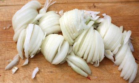 - cebollas - 2 kg; Es mejor tomar cebollas con una cáscara exterior blanca, tiene un sabor dulce y suave.