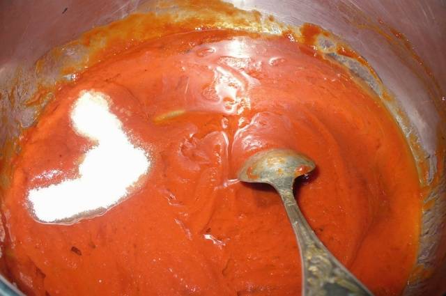 La tecnología de conservación de este blank es ligeramente diferente a la de otros tipos de lecho. Diluir la pasta de tomate con el mismo volumen de agua, agregar sal y azúcar.