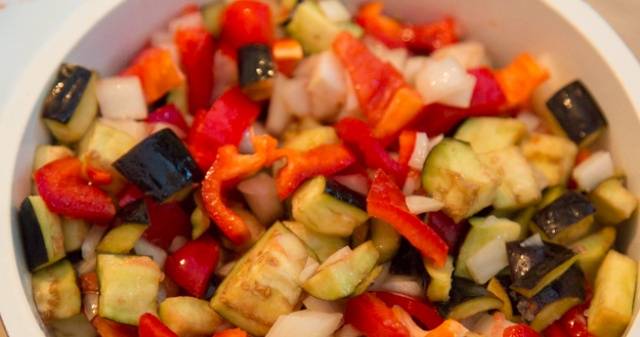 Para hacer un lecho con berenjenas, tomates y pimientos, necesitamos: