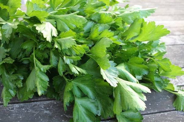 Todas las hierbas son ricas en vitaminas. No es de extrañar que en muchos países exista la tradición de utilizarlos en cada comida, y siempre frescos. Entre todos los representantes de las verduras, el perejil tiene el récord de propiedades útiles. La composición única de vitaminas y minerales de esta hierba picante la hace simplemente insustituible en el menú diario. El bajo contenido calórico y la presencia de casi todas las vitaminas en cantidades considerables son sus principales ventajas. Contiene 3 veces más vitamina C que los limones y mucha más vitamina A que las zanahorias. El altísimo contenido de potasio y calcio lo hace muy útil para edemas de cualquier naturaleza y problemas dentales. Solo las mujeres en una posición interesante deben ser tratadas con precaución. Aumenta el tono del útero.