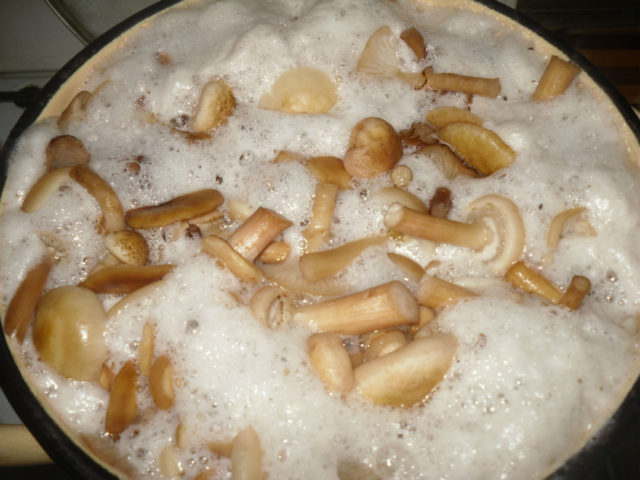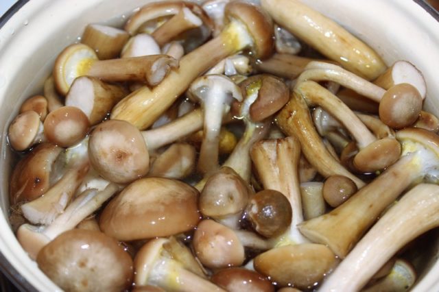 Si los hongos no emanan un fuerte olor a podrido, se eligen especímenes más grandes, se limpian de residuos de tierra y se lavan por separado con agua corriente. Luego se hierve dos veces en agua con sal y se sala en caliente. Si el olor es fuerte, se deshacen de los hongos.