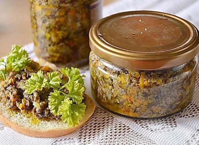 Después de 90 días, la merienda de muñón estará completamente lista. Antes de servir, puedes decorarlos con cebollas, picar las hierbas y sazonar con aceite vegetal.