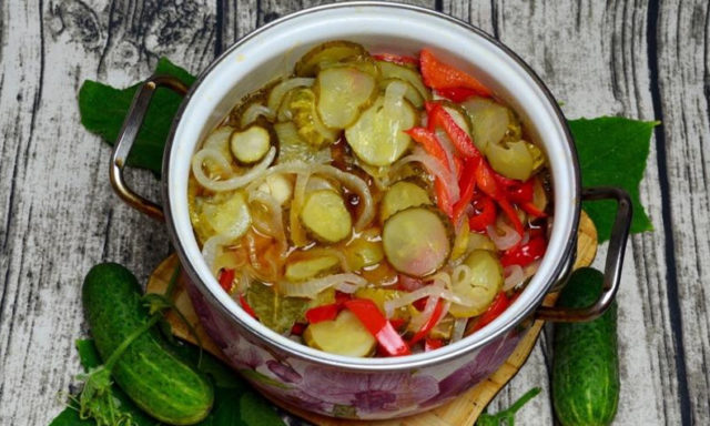 Los pimientos morrones son una gran adición a un bocadillo de pepino picante para el invierno. El principio de preparar un plato de este tipo prácticamente no difiere de la receta clásica.