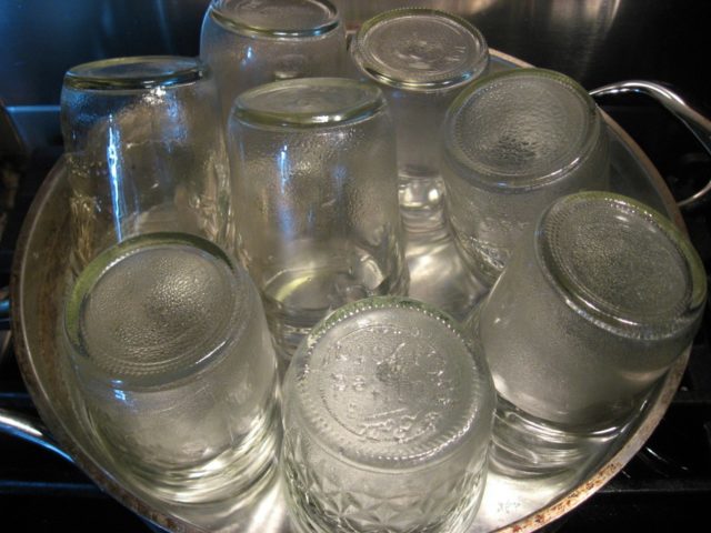 - Coloque en latas preparadas una a la vez, selle herméticamente inmediatamente.