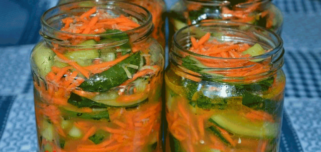 Esta sabrosa opción es relevante para aquellas amas de casa que necesitan preparar rápidamente una ensalada coreana de pepino para un festín. La opción de bocadillo de pepino dulce caliente se puede preparar en solo media hora.
