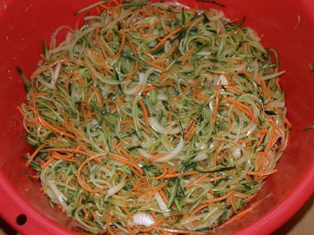 - Pica finamente el pepino. Luego agregue las zanahorias ralladas.