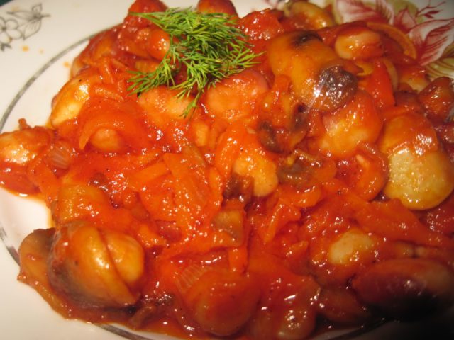 Setas de miel en pasta de tomate para el invierno con frijoles