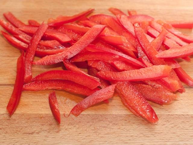 - Los pimientos morrones (1 kg) también se deben picar y quitar las semillas.